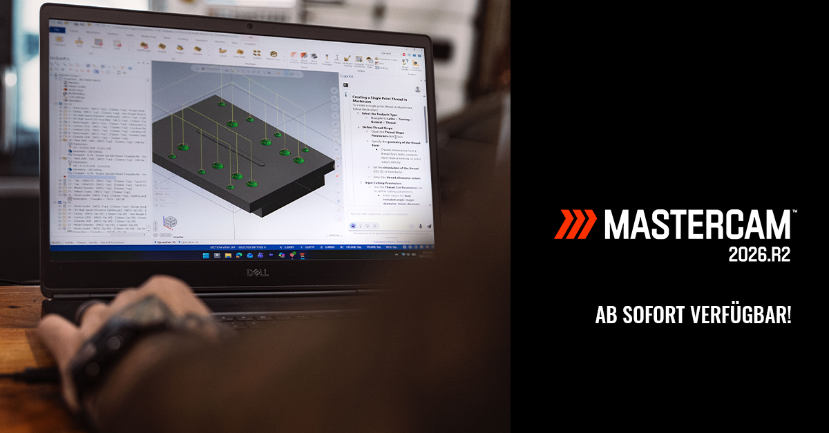 9. Februar 2026 (Bad Lippspringe, Deutschland) – Mastercam, der weltweit führende Anbieter von CAD/CAM-Software, gab die Veröffentlichung von Mastercam 2026.R2 bekannt, der zweiten Version im Rahmen seines neuen halbjährlichen Release-Zyklus. Diese Umstellung von jährlichen auf halbjährliche Updates spiegelt das Engagement von Mastercam wider, kontinuierliche Innovationen zu liefern und auf die sich wandelnden Anforderungen der modernen Fertigung zu reagieren. Anstatt ein ganzes Jahr zwischen größeren Updates zu warten, erhalten Kunden nun zweimal pro Jahr wichtige neue Funktionen.