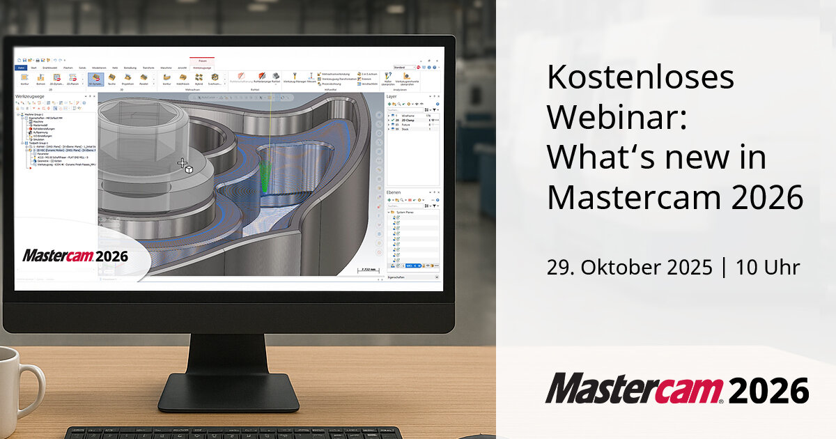 In unserem kostenlosen Webinar „What’s New in Mastercam 2026“ am 29. Oktober zeigen wir Ihnen kompakt und praxisnah, welche neuen Funktionen, Strategien und Tools die neue CAD/CAM-Version für Sie bereithält.