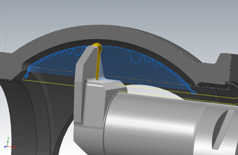 Mastercams Dynamic Motion Technologie findet nicht nur im Bereich Fräsen Verwendung, auch im Drehen sorgt sie für perfekte Werkzeugwege. Der Dreh-Werkzeugweg „Dynamisches Drehen” wurde u. a. zur Bearbeitung harter Materialien entwickelt. Die dynamische Bewegung lässt einen effektiveren Eingriff ins Material zu und nutzt die Schneidplatten optimal aus. Dank dieser Funktion wird die Standzeit Ihrer Werkzeuge um bis zu 300 Prozent verlängert.